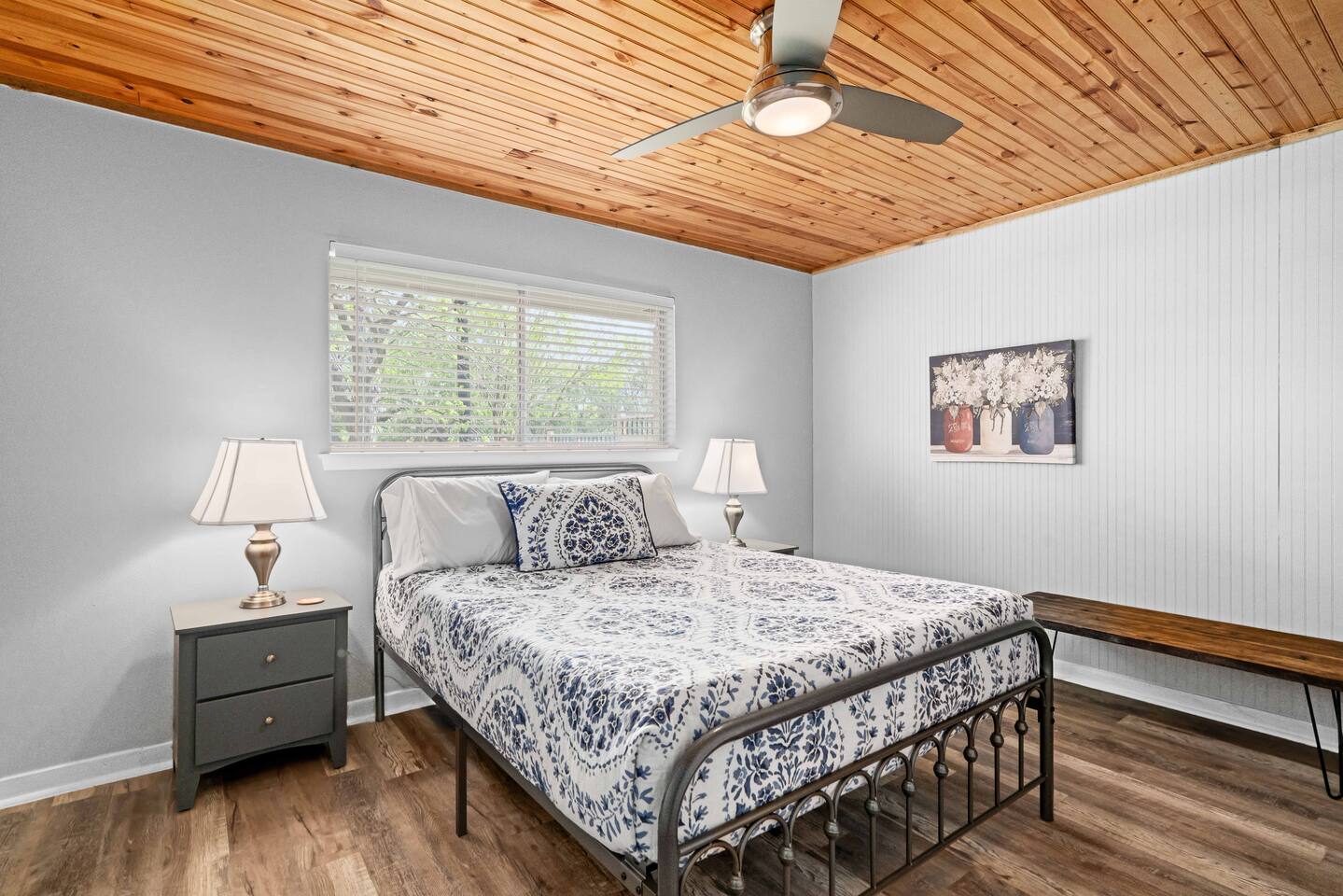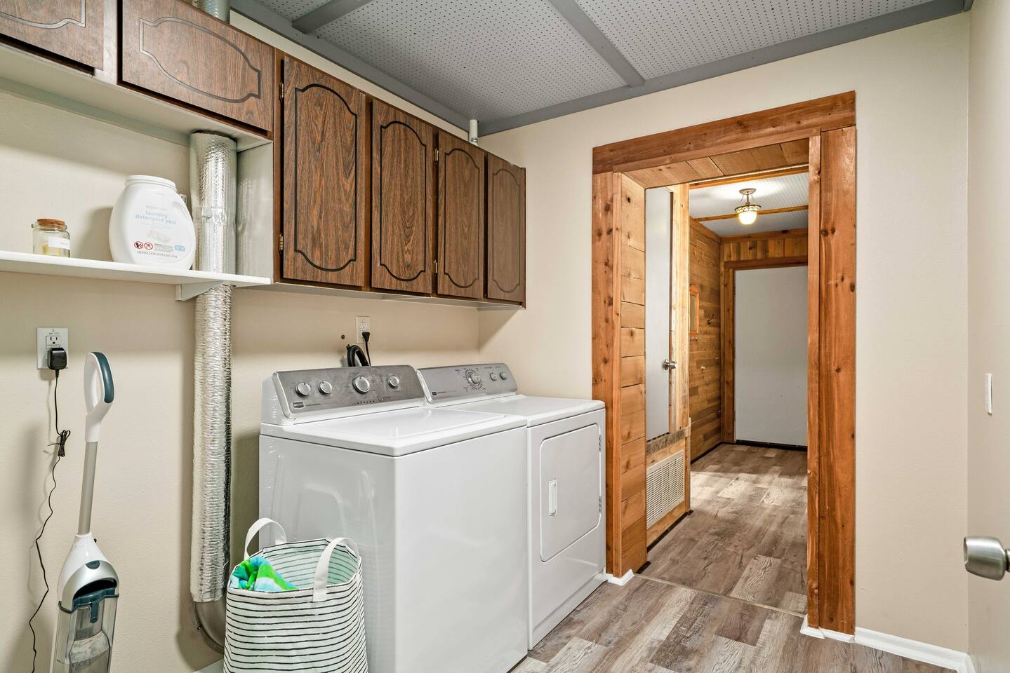 Outside: You'll probably want to spend most of your time out back. Our outdoor fireplace, HOT TUB, and deck are guest favorites - ours too! There is a picnic table, outdoor chairs, and a charcoal grill available to provide a restful outdoor space for you and yours. Inside: A comfortable LIVING and DINING area provides a split between the primary bedroom and secondary bedrooms. Our dining room has seating for 6 and there's a kitchen island that also seats 2. The PRIMARY BEDROOM has a king size memory foam bed, walk-in closet, Roku TV, and an en suite bathroom. Hand soap, body wash, extra pillows, and hair dryer are provided. A Pack and Play with sheet is also available for infants. BEDROOM 2 has a comfy queen size bed, Roku TV, & extra pillows. BEDROOM 3 has a queen size memory foam bed, Roku TV, & extra pillows. Bedrooms 2 & 3 share the full SECONDARY BATHROOM which is also accessible from the living room. Hand soap, body wash, and hair dryer are provided. We also invite you to enjoy our BONUS ROOM with a futon, game table, & chairs (extra seating). Makes a great place for the kids or anyone else who needs a little extra space to play. We've provided games and puzzles for those occasional times when you need some fun indoor activities. Our KITCHEN is fully equipped with dinner service for 6, wine glasses, coffee mugs, fridge with ice maker, electric stove & oven, blender, toaster, and basic spices. We provide a starter supply of dishwasher detergent. There is also a full-size coffee maker and Keurig available (bring your favorite coffee or K-cups). Our LAUNDRY ROOM provides a full-size washer and dryer and starter supply of laundry pods. PARKING: In addition to a single car garage and extended concrete driveway, there is also gated gravel parking available for all of your lake toys or extra vehicles. We have plenty of parking for our registered guests, so please - NO street parking! Please be sure to check our house rules for additional information about the property and don't hesitate to message me with any questions you might have. Enjoy!!